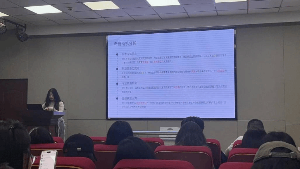 2021级环境设计专业廖曼婷同学依托研究生备考时间线对考研动机分析、目标院校选择、如何备考、心态调整等方面做了详细分享,建议大家理性选择院校、专业。她认为“考研不仅是知识的比拼,更是心态的较量,考研是一场持久战,需要持之以恒的耐心与毅力,才能收获成功之花”。