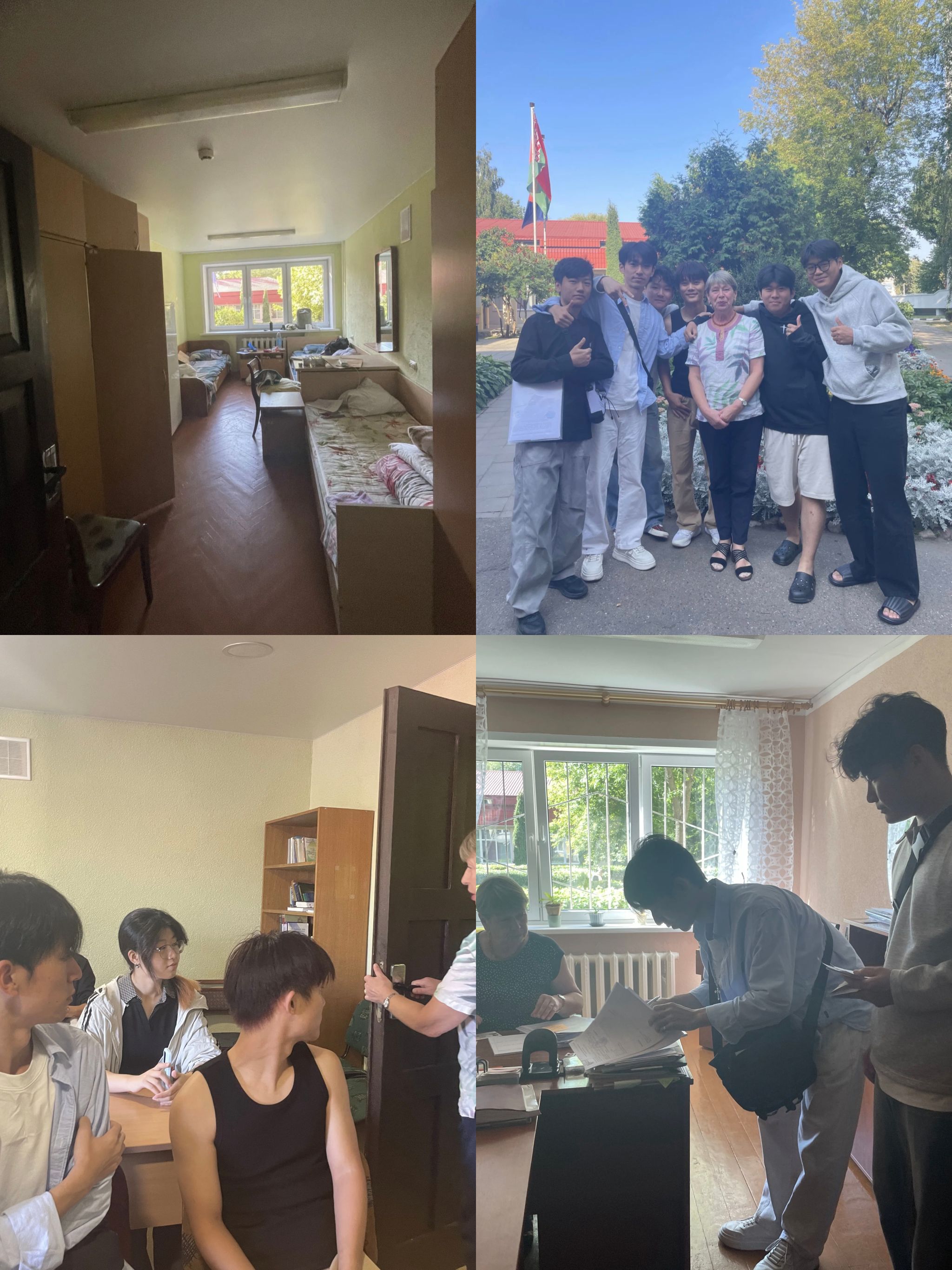 同学们在抵达明斯克、莫斯科后,迅速地适应了新环境,抵达当日便全部入住宿舍。在外方院校及本院老师的协助下,同学们在几天的时间内顺利完成入学体检、保险购买、移民局长期签证办理、入学注册、课程选报等手续。白俄罗斯国立大学交换生程文浩展示了自己窗明几净的宿舍。他表示:“公寓设施齐全,新领了床褥被品,贴心的宿管“妈妈”耐心为大家办理入住手续,主动询问大家生活中的困难,尽力帮助大家找到归属感。”