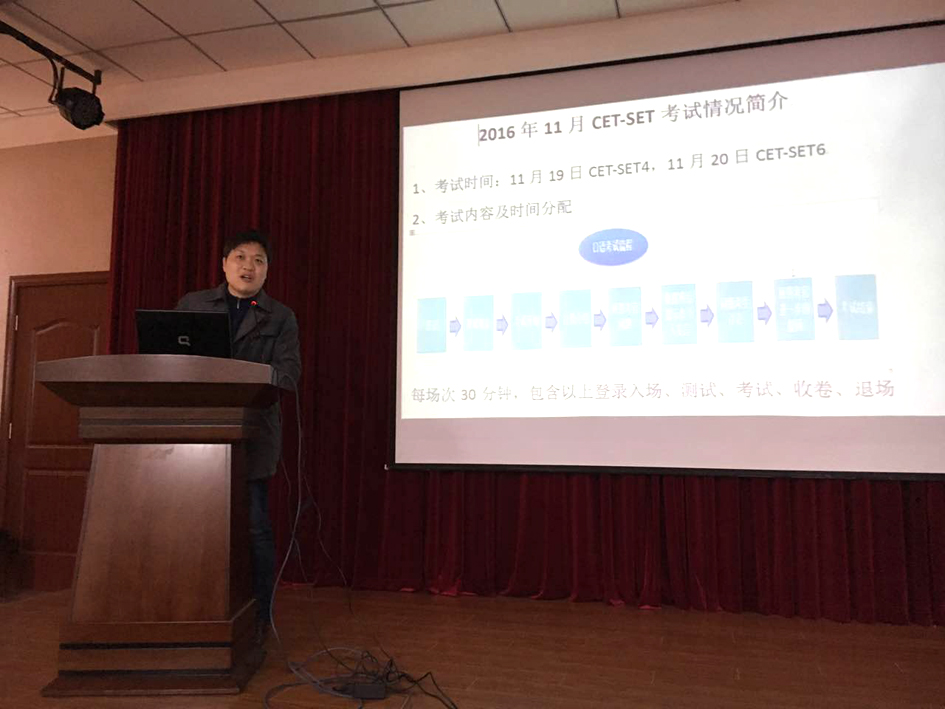 2016年11月17日下午,小说狂人 在二楼报告厅举办外语文化节系列之大学英语四六级考试辅导专题讲座,学院外语教研室主任张永钢老师担任主讲,2014级通信工程专业李平、赵春阳、蔡一甲同学同大家分享考试经验。