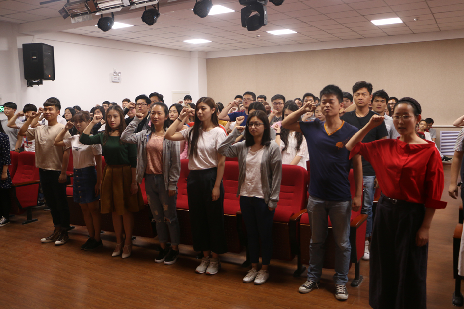 会上,首先进行了新党员入党宣誓仪式,在学生党支部书记连醒老师带领下,84名新党员在党旗下举起右手并庄严宣誓,表达了他们对党的庄严承诺。