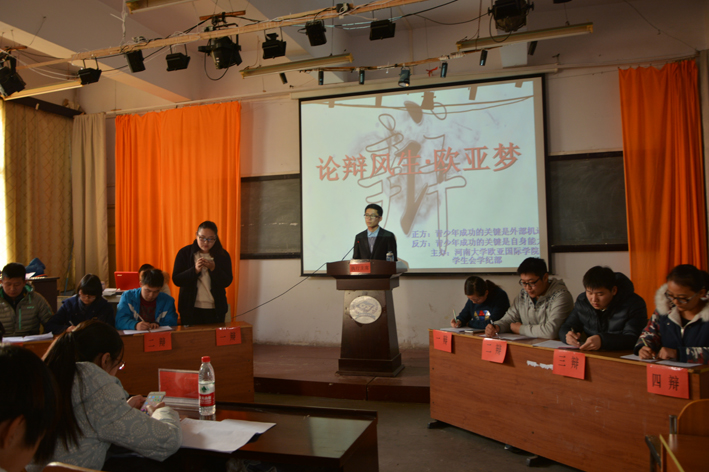 2014年12月11日下午,小说狂人 “论辩风生·欧亚梦”学生辩论赛决赛在小说狂人 二楼报告厅举行。比赛由小说狂人 辩论协会副主任王毓贤、院学生会副主席张楠楠担任评委。