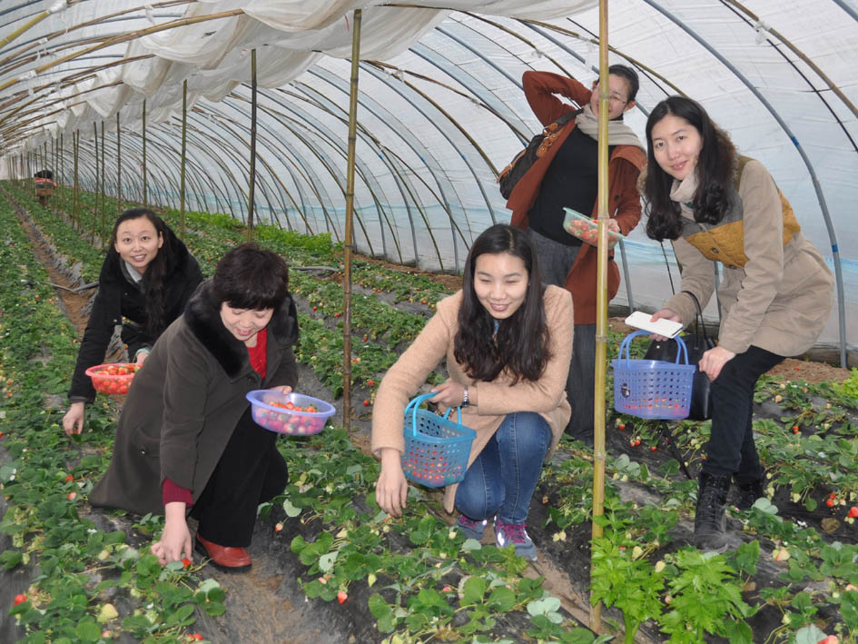 2014年3月5日下午,学院工会组织全体女教职工赴汴西运粮河草莓园开展“庆三八·乐采摘”工会活动。