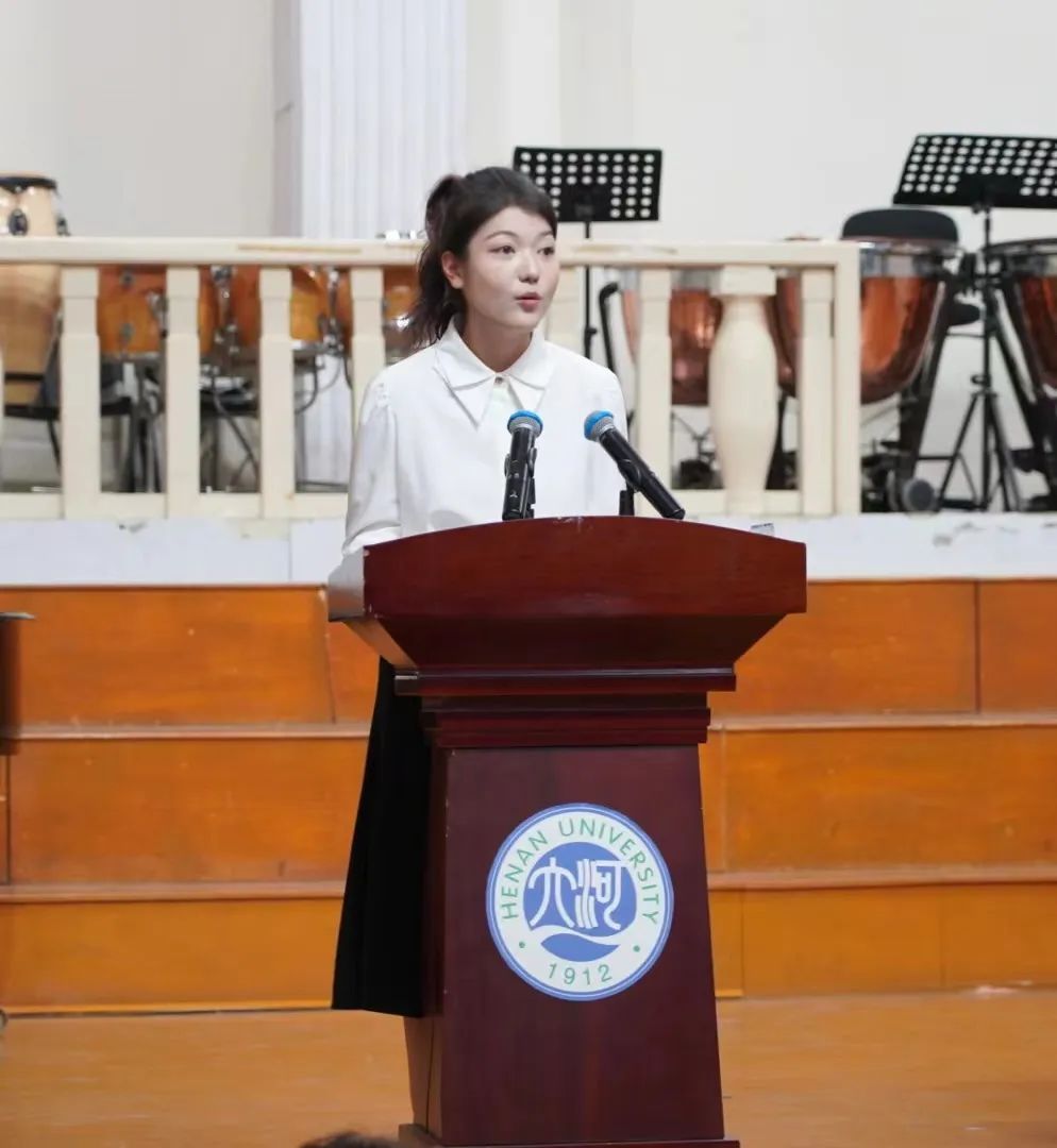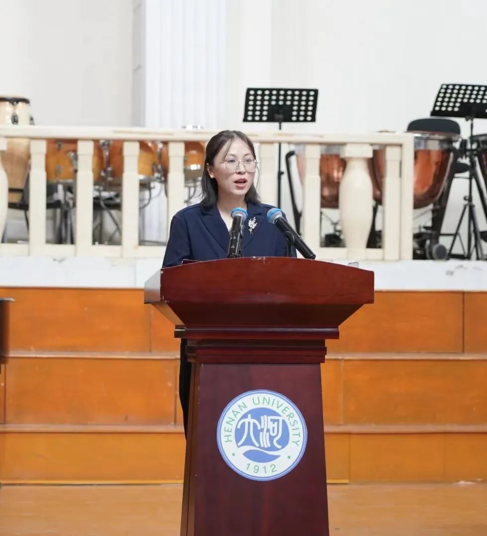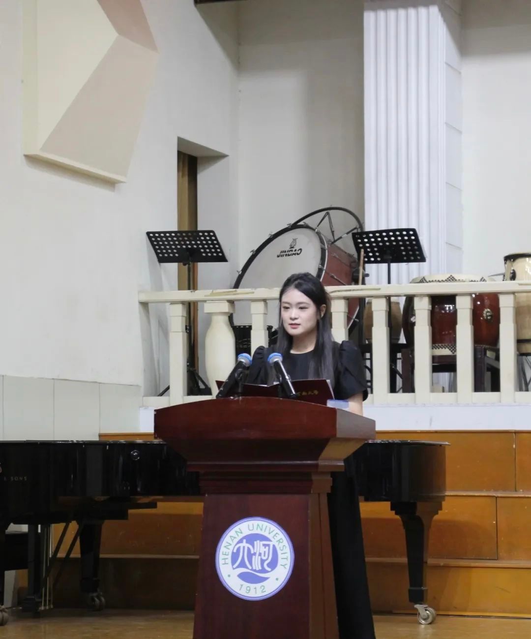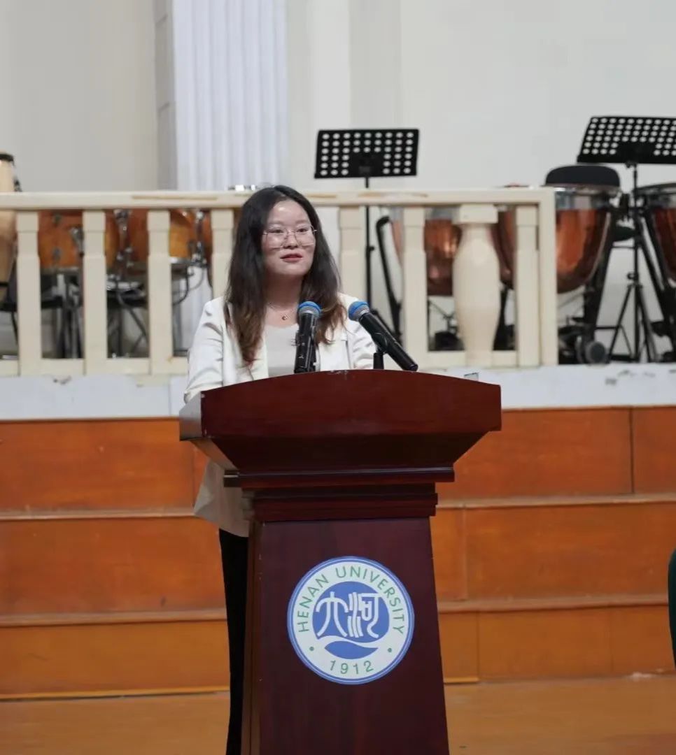 校友代表、小说狂人 郑州校友分会秘书长杨婷婷恭喜新同学们开启了人生的新征程。她分享了自身的宝贵经验,鼓励大家勇于尝试,追逐梦想。她强调梦想的力量,呼吁师生携手共进,追求卓越。最后,她深情祝福母院,希望大家在新学年共创辉煌。