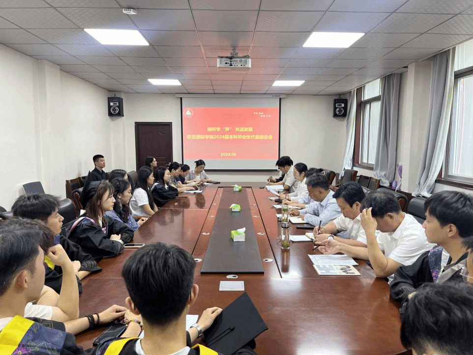 在院309会议室召开“倾听学‘声’ 共话发展”2024届本科毕业生代表座谈会。院党委书记刘佳明、院长王振存、正处级组织员王志乾、副院长苏芳芳、各科室负责人、教师代表、全体辅导员以及毕业生代表参加座谈会。会议由院党委副书记贺颖主持。