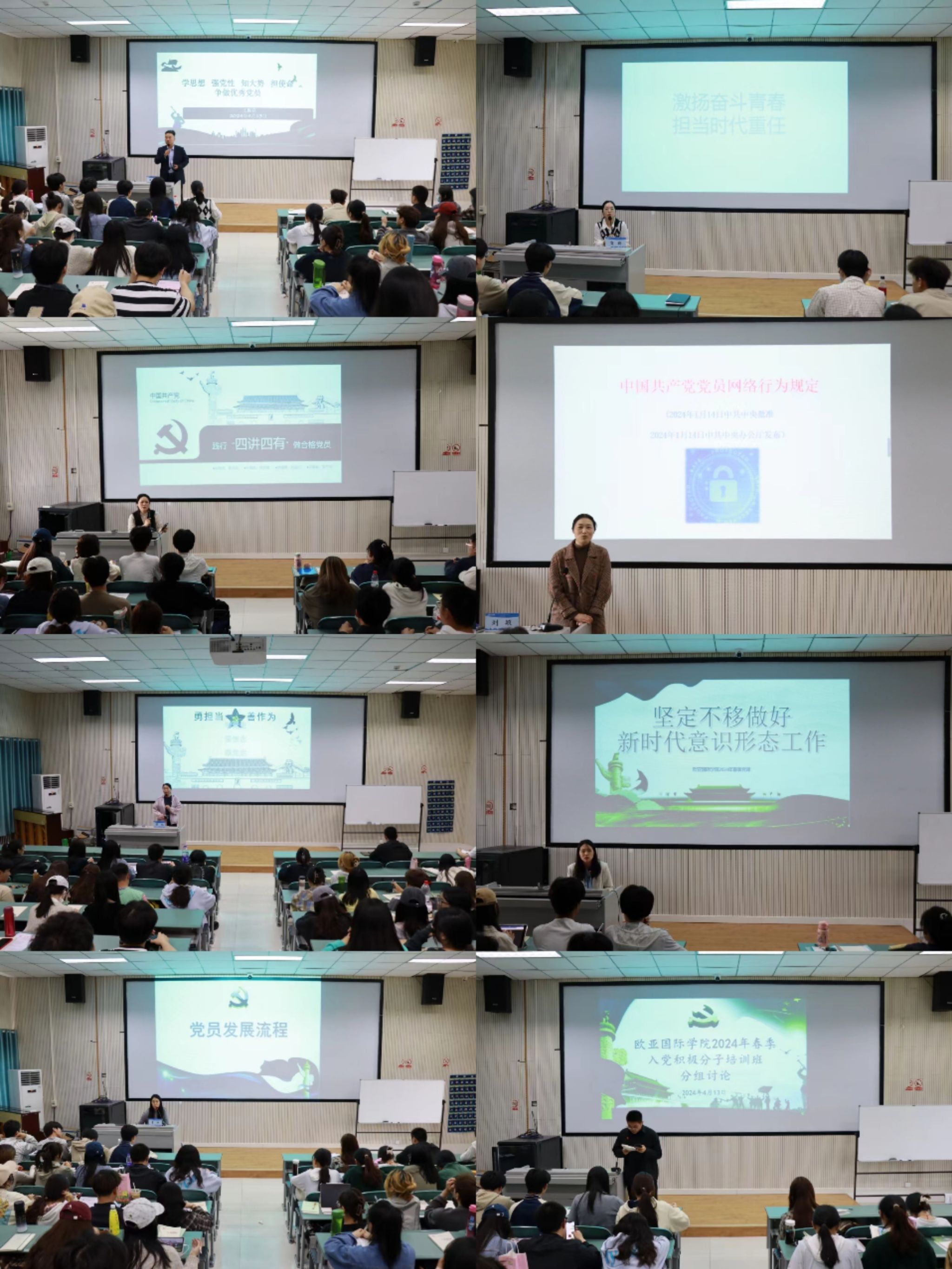 在集中授课环节,培训班先后邀请到院长王振存、党委副书记贺颖、副院长苏芳芳、教工党支部书记刘颖、学生第一党支部书记彭韬、学生第二党支部书记郑昕、团委副书记李琳分别就《知大势、担使命、建新功,争做合格党员——深入学习贯彻习近平新时代中国特色社会主义思想》《激扬奋斗青春,担当时代重任》、《不忘初心,做合格党员》《学习党章党规》《学党史,知党情,跟党走》、《意识形态教育与党的民族宗教政策》《党员发展程序》等内容为学员进行了培训。