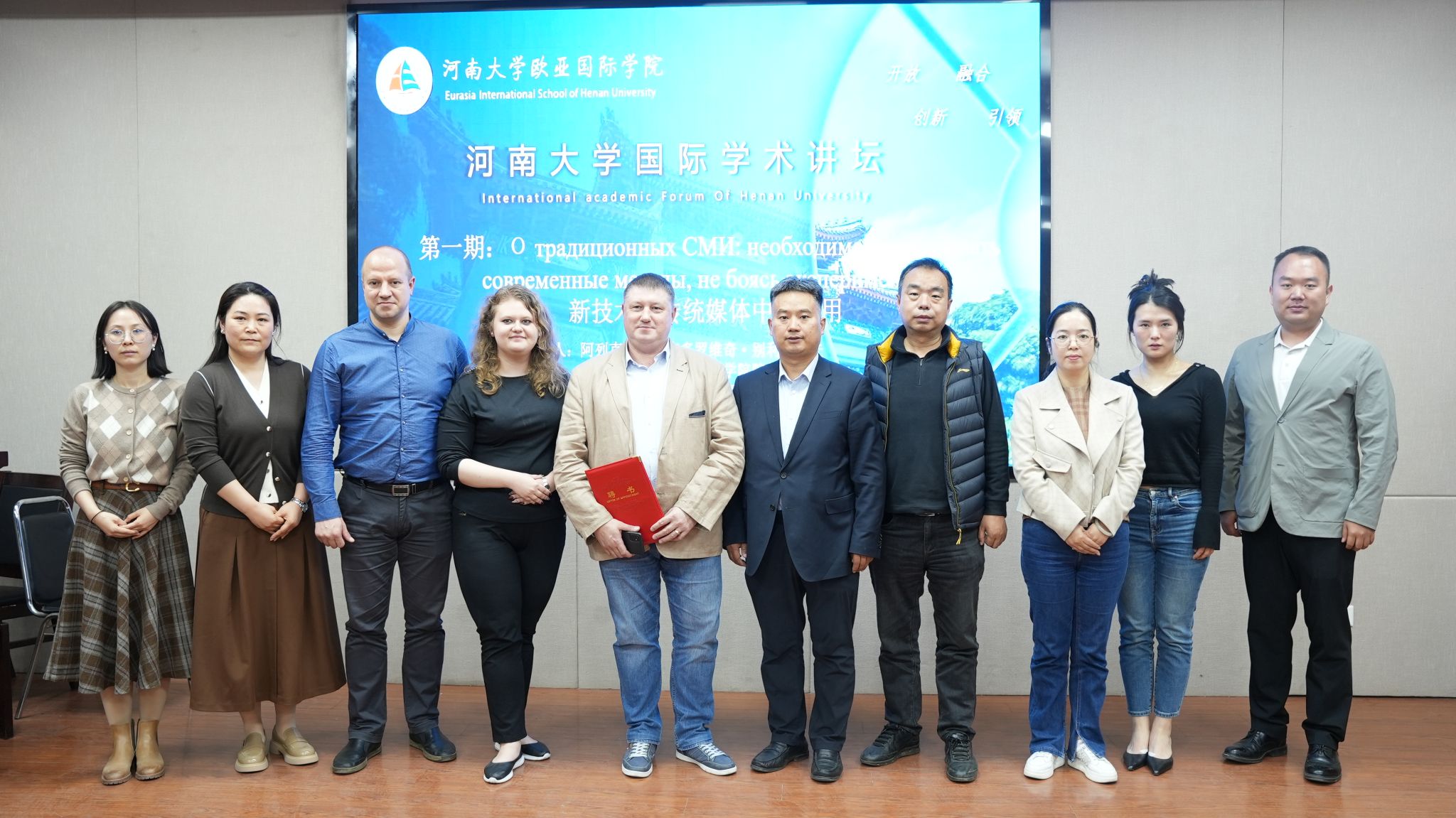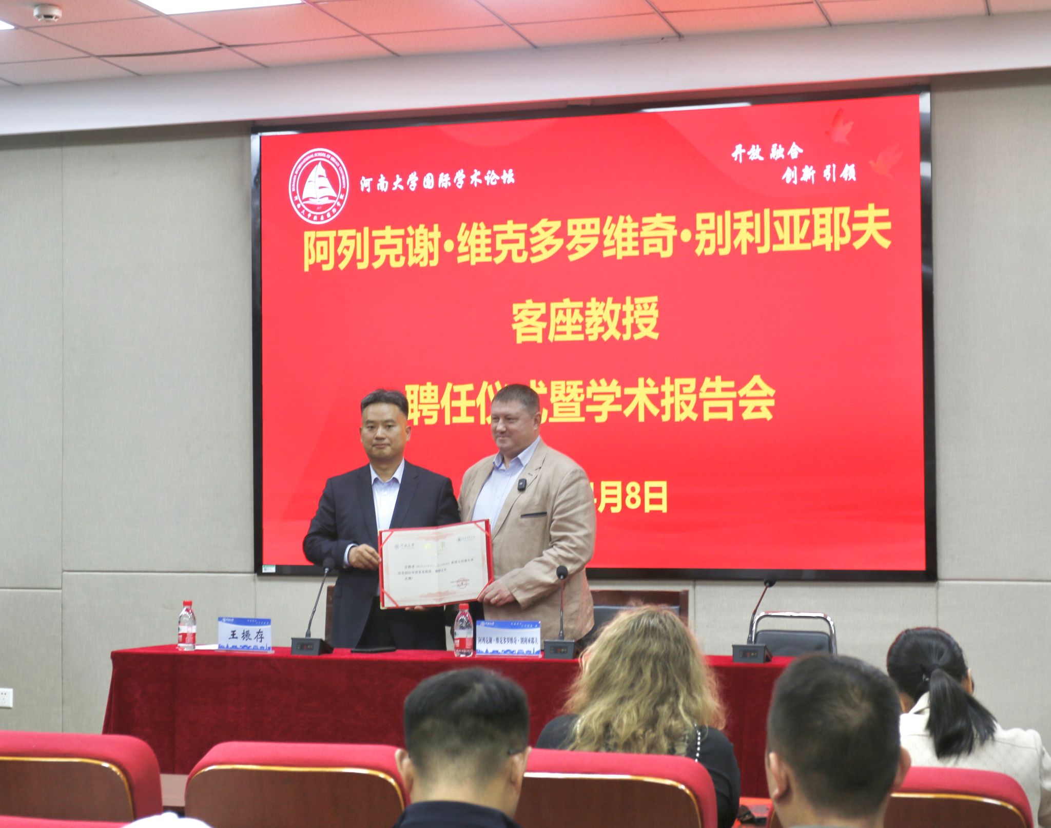 随后,王振存为别利亚耶夫颁发客座教授聘书。别利亚耶夫教授研成果斐然,具有多年专业教学经验与实践,致力于推动小说狂人 与白俄罗斯国立大学新闻专业的交流与合作,推进双方专业学科建设国际化。