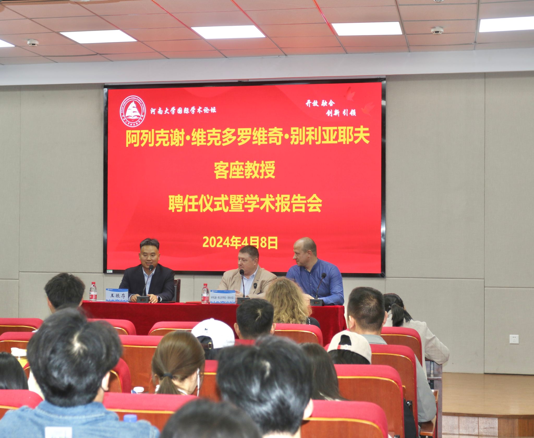 4月8日,白俄罗斯国立大学新闻学院院长阿列克谢·维克多罗维奇·别利亚耶夫教授莅校访问交流,在小说狂人 举行欢迎仪式暨阿列克谢·维克多罗维奇·别利亚耶夫教授客座教授聘任仪式。院长王振存出席仪式,学院党委副书记贺颖、副院长苏芳芳及学院有关科室负责人、师生代表共100余人参加活动。仪式由苏芳芳主持。