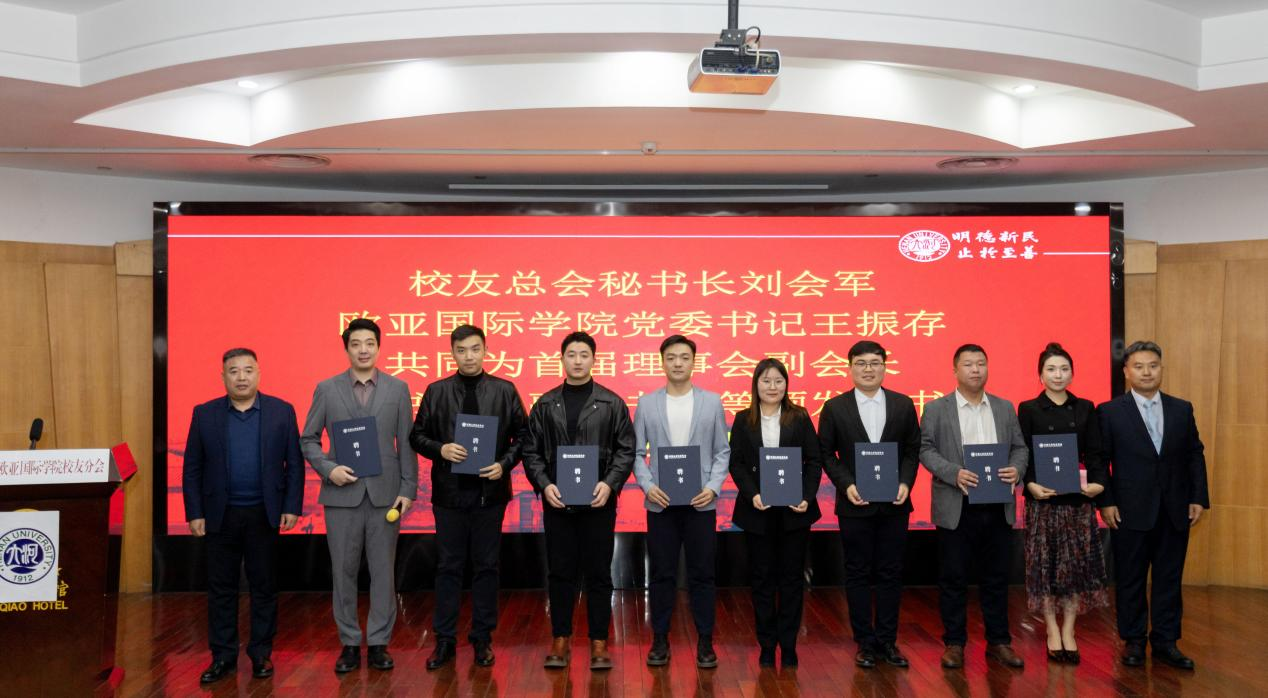 刘会军、王振存共同为理事会副会长、秘书长、副秘书长颁发聘书,并向校友分会赠送礼物。