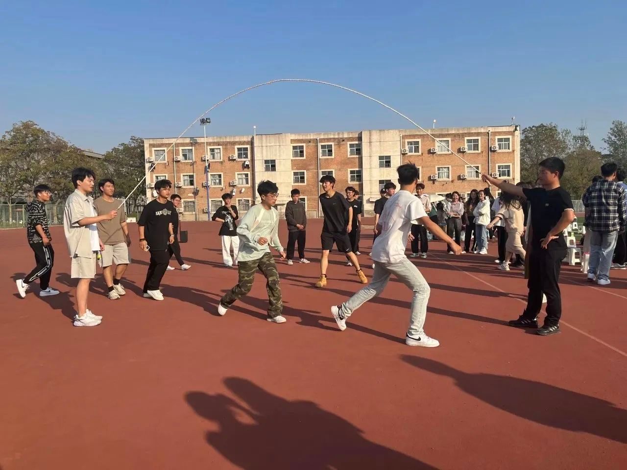 本次活动设“两人三足”、“推铁环”、“跳大绳”等怀旧游戏环节。在游戏活动中大家积极参与、团结协作、迎难而上,创造出真诚友善的团队氛围,也充分体验到归属感与亲密感,感受满满的幸福感。游戏结束后,所有参与活动的同学聚在一起,共同拍下一张欢乐温馨的合照。此时此刻已然成为学生组织的每一位成员心中美好的回忆。伴随着相机的快门声,此次团建活动完美谢幕。