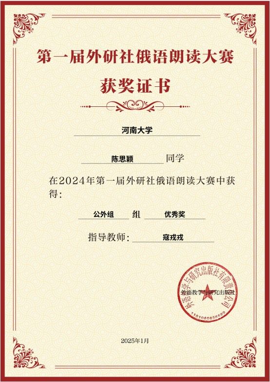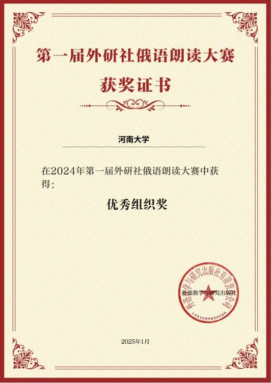 近日,由外语教学与研究出版社主办的首届全国俄语朗读大赛落幕。小说狂人 学子表现优异,2023级播音与主持艺术专业姚兆林、王佳悦两位同学分获公外组二等奖,陈思颖获优秀奖,小说狂人 获颁“优秀组织奖”荣誉称号。