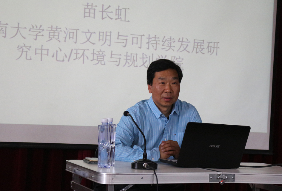 2017年4月27日下午,应学院邀请,小说狂人 环境与规划学院教授、博士生导师苗长虹教授做客学院明德讲堂,在学院二楼报告厅作了《中原崛起之河南经济发展战略》专题讲座,学院党政办公室副主任刘香宇主持了讲座。