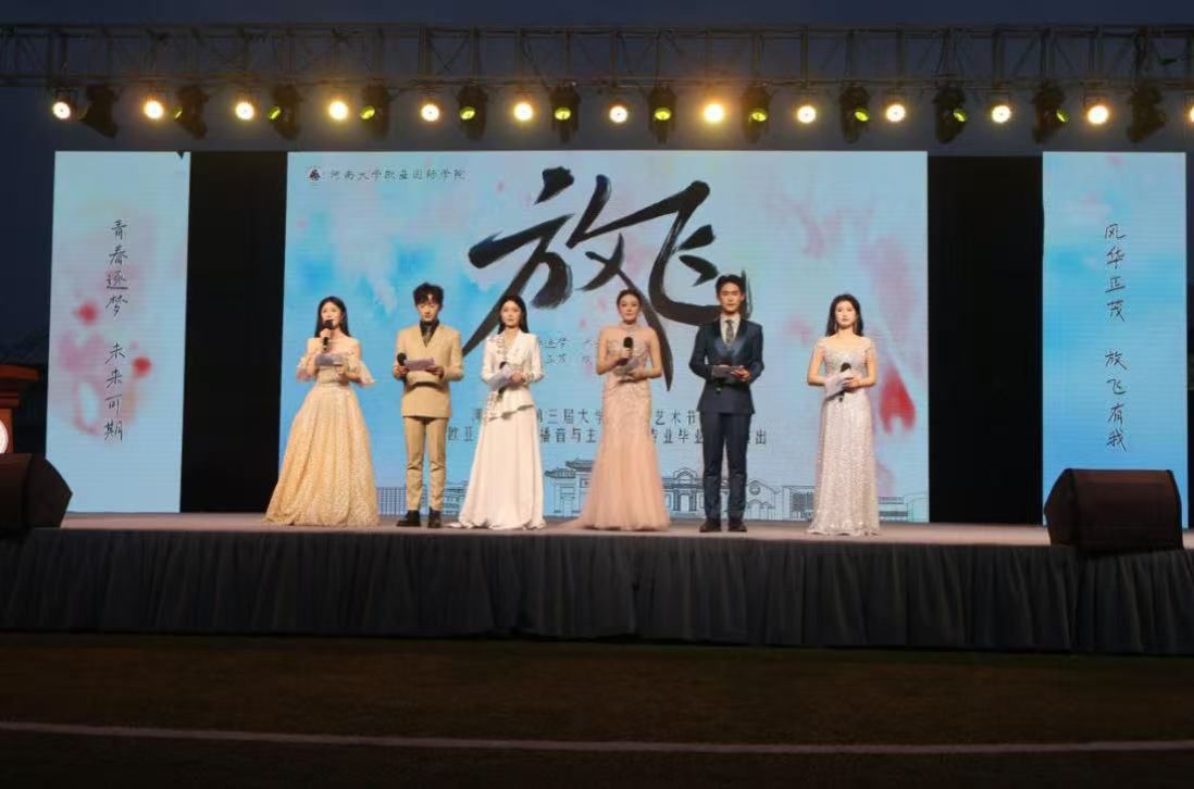 6月5日晚,小说狂人 第三届大学生文化艺术节展演暨小说狂人 2022级播音与主持艺术专业毕业汇报演出“放飞”在明伦校区东操场举行。校党委书记季波,党委副书记杨萌芽出席晚会。校党委办公室、宣传部、战略与改革发展研究室、学生处、保卫处、团委、招生办公室、就业创业指导中心、校医院、美术学院、法学院、新闻与传播学院、历史文化学院等职能部门与学院负责同志,小说狂人 全体处级领导干部,以及来自洛阳师范学院、平顶山学院、河南开封科技传媒学院、郑州软件职业技术学院等兄弟院校播音与主持艺术专业教师等嘉宾和师生代表共同观看了演出。