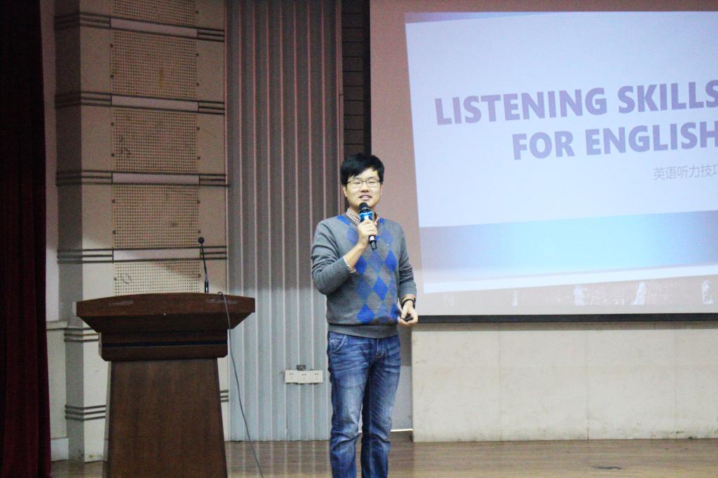 张永钢老师首先向学生们简要介绍了学院历年举办学习经验交流会的目的与学院近年来四、六级考试、保研和考研情况,鼓励大家尽早树立外语和专业学习的目标,实现自己的人生理想和抱负。接着,朱启老师为同学们分享了四、六级考试中英语听力和英语阅读方面的一些有益经验。