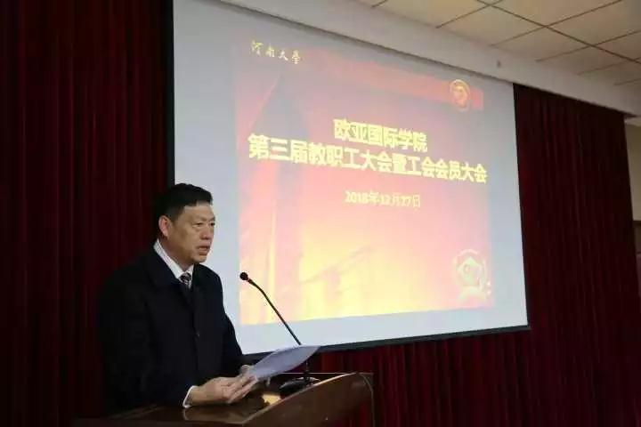会议在雄壮的国歌声中拉开帷幕。与会人员首先听取了院长赵成新所作的《学院工作报告(2014—2018年度)》。报告回顾了五年来的工作,总结了学院取得的进步和成就以及五年来办学的经验,并指出了今后面临的机遇和挑战。