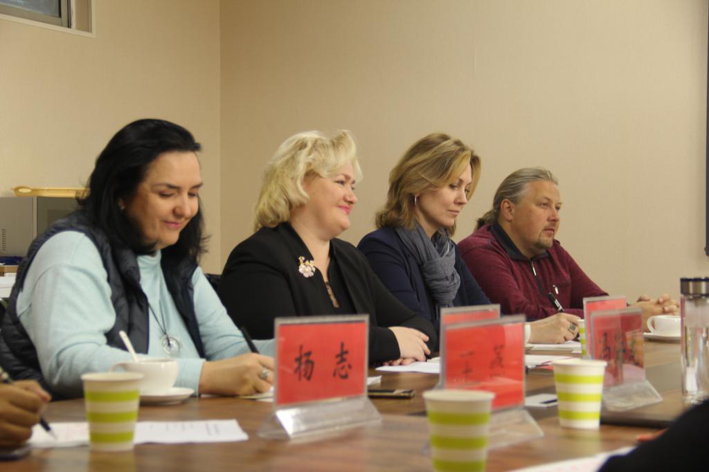 最后,赵成新院长与萨姆谢维奇院长就进一步深化合作、提升办学层次、完善课程对接等方面进行了深入的探讨,并在课程对接与“3+2”硕士研究生合作项目等方面,达成了一致。在阵阵掌声下,双方互赠礼物,并合影留念。