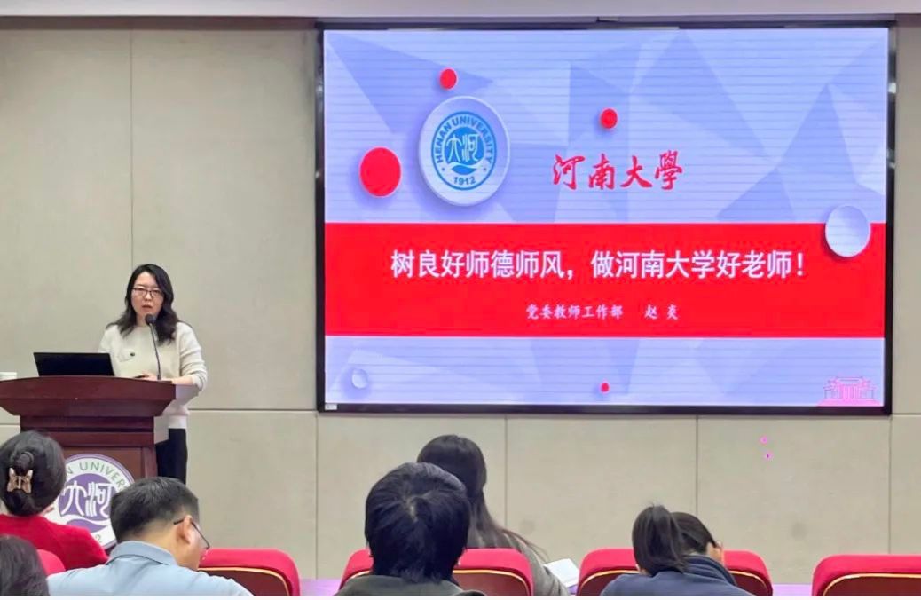好老师”为主题,围绕“师德师风的重要性、高校师德师风规范要求、做什么样的好老师”三个方面进行了详细的讲解。她结合工作实际,分析了当前师德师风建设面临的新形势和新挑战,阐述了新时代教师肩负的新使命。赵炎表示,抓好师德师风建设是打造高素质教师队伍的内在要求和重要保证,也是教师自觉践行立德树人根本任务的关键,希望大家始终牢记为党育人、为国育才的初心使命。