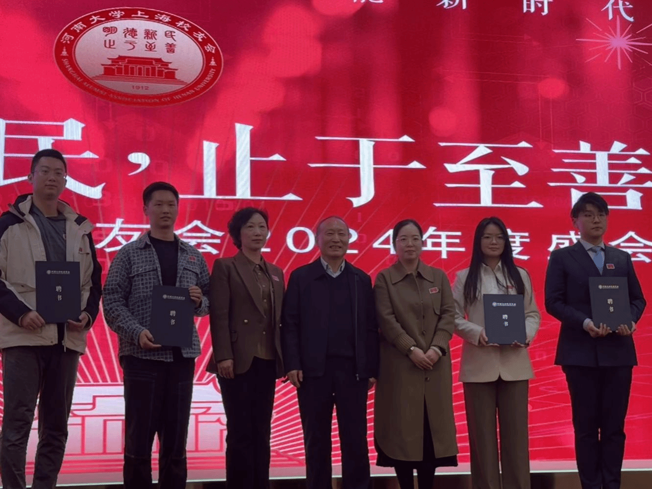 傅声雷为学院校友分会授旗。刘婷、刘献、贺颖共同为分会会长、副会长、秘书长颁发聘书。宋永鹏、贺颖向分会赠送贺礼。