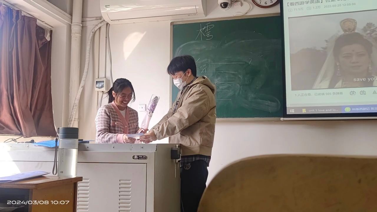 还为女教职工和任课老师们准备了鲜花和贺卡,希望能够为老师们的辛勤工作添加一抹亮色,愿她们的生活如春日般明媚,如鲜花般绚烂!