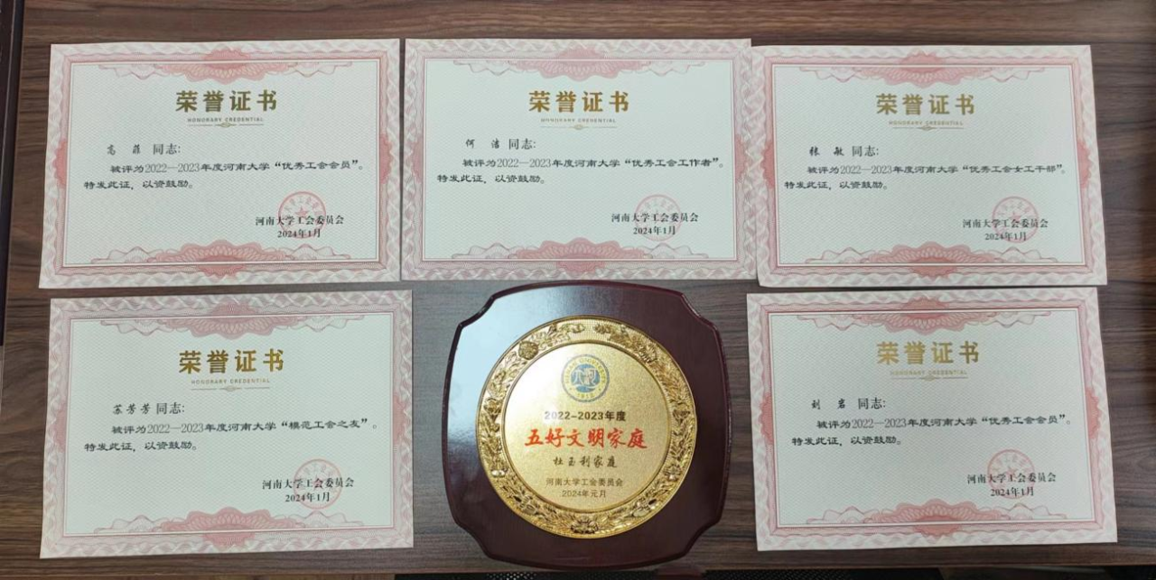 荣获多项荣誉。学院工会被评为工会工作先进单位,副院长苏芳芳被评为“模范工会之友”,杜玉利老师家庭荣获“五好文明家庭”,何洁老师被评为“优秀工会工作者”,张敏老师被评为“优秀工会女工干部”,高菲、刘岩老师被评为“优秀工会会员”。