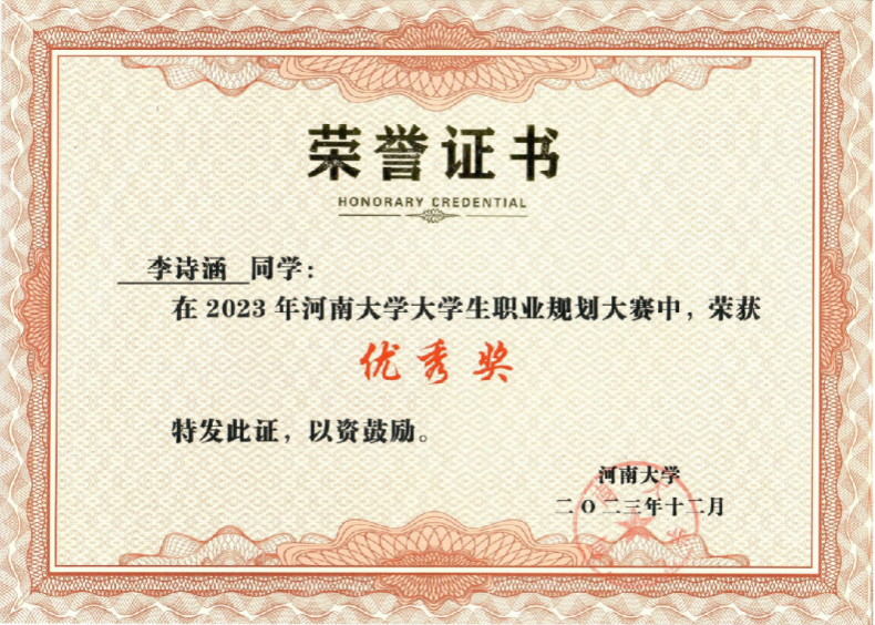在此次大赛中荣获优秀组织奖、2021级播音与主持艺术专业李钰涵荣获三等奖、2023级环境设计专业李诗涵同学荣获优秀奖。