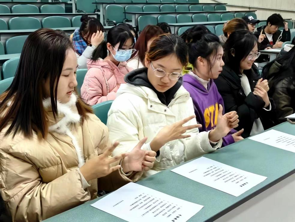 青年志愿者协会于学院三楼阶梯教室举办了“博爱无声,手语传情”手语培训活动,活动由青协文艺部委员、2023级播音与主持艺术专业姚子熠主持。