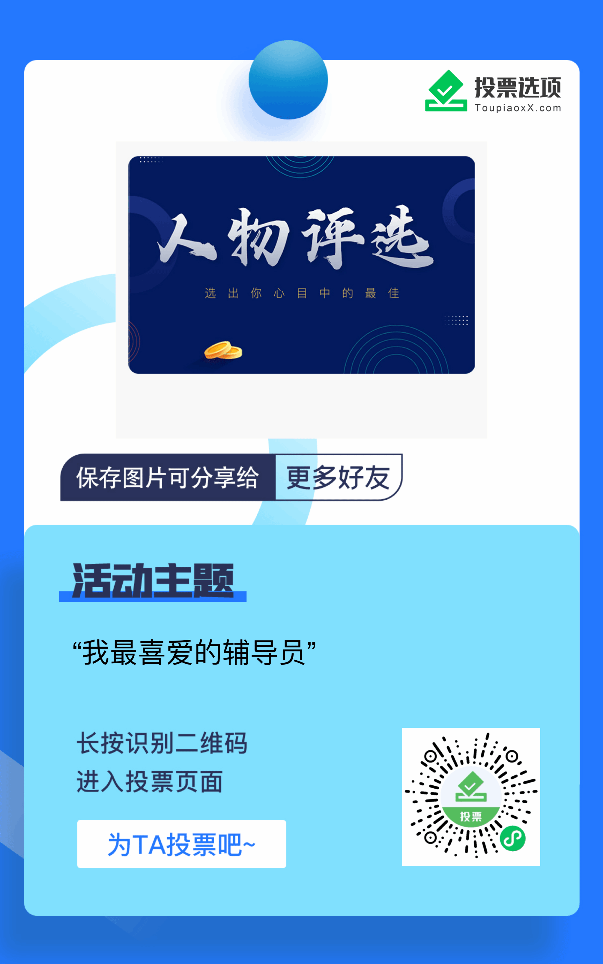 现在,让我们把珍贵的一票投给彭韬老师!(扫描文末图中二维码即可投票)为这位有温度、有力量、有担当的彭老师助力,让这份育人初心被更多人看见,让这份育人情怀继续传递!