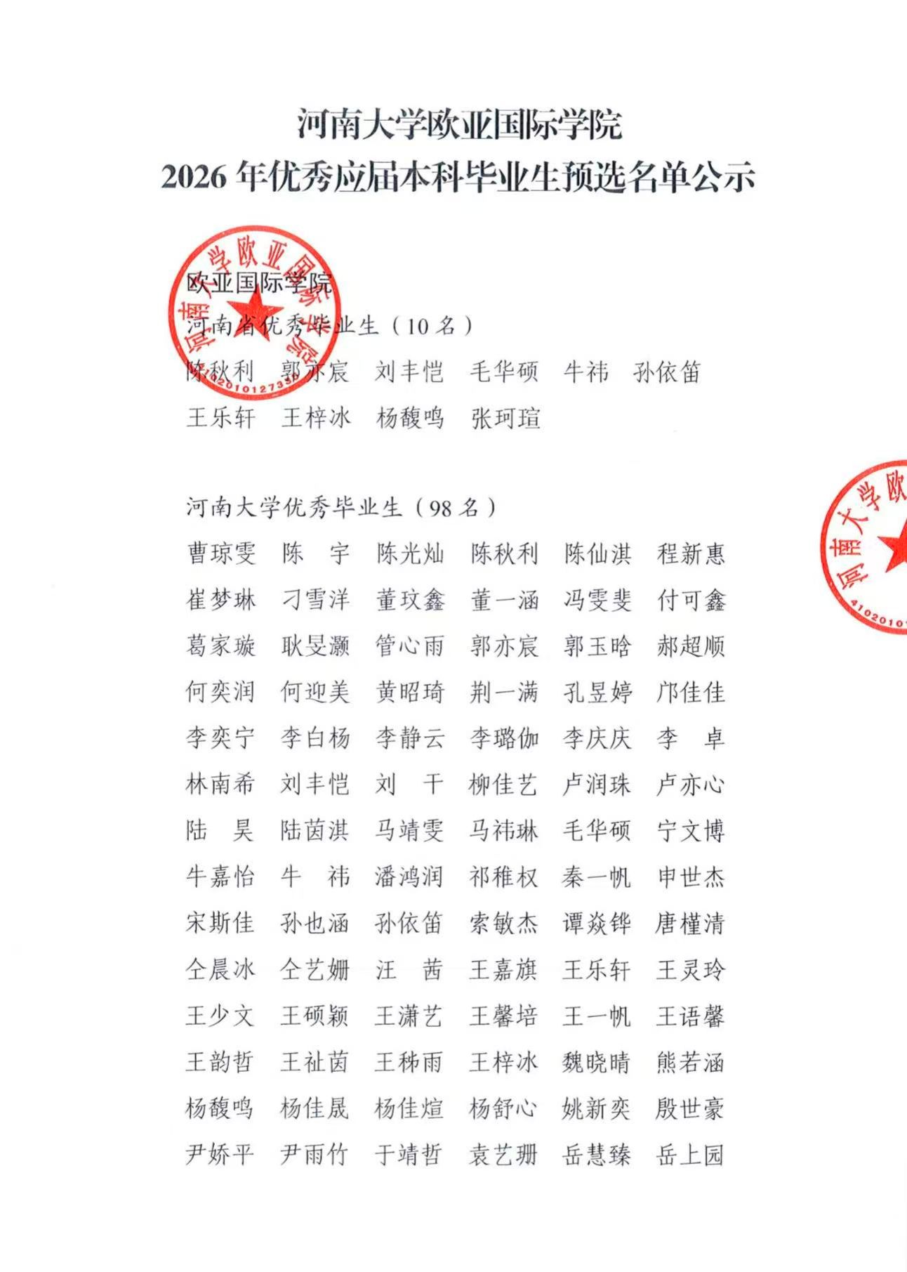 小说狂人 2026年优秀应届本科毕业生预选名单公示