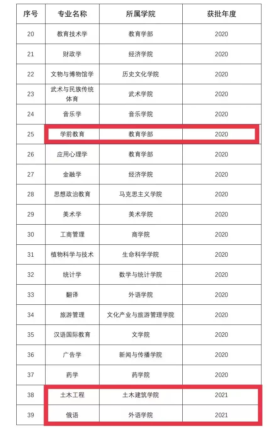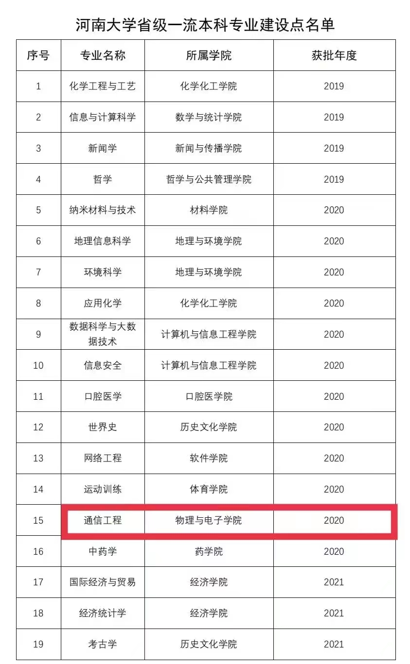除了本次入选的7个专业之外,学前教育专业已于2020年入选国家级一流本科专业建设点,通信工程专业已于2020年入选河南省一流本科专业建设点。