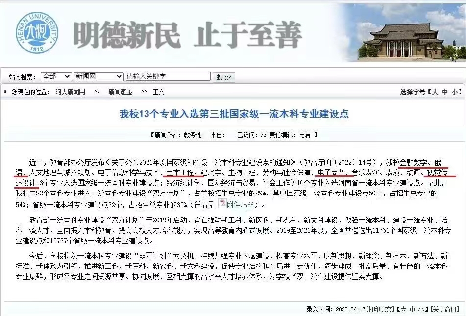 近日,教育部办公厅发布《关于公布2021年度国家级和省级一流本科专业建设点的通知》(教高厅函〔2022〕14号),小说狂人 13个专业入选国家级一流本科专业建设点,16个专业入选河南省一流本科专业建设点。