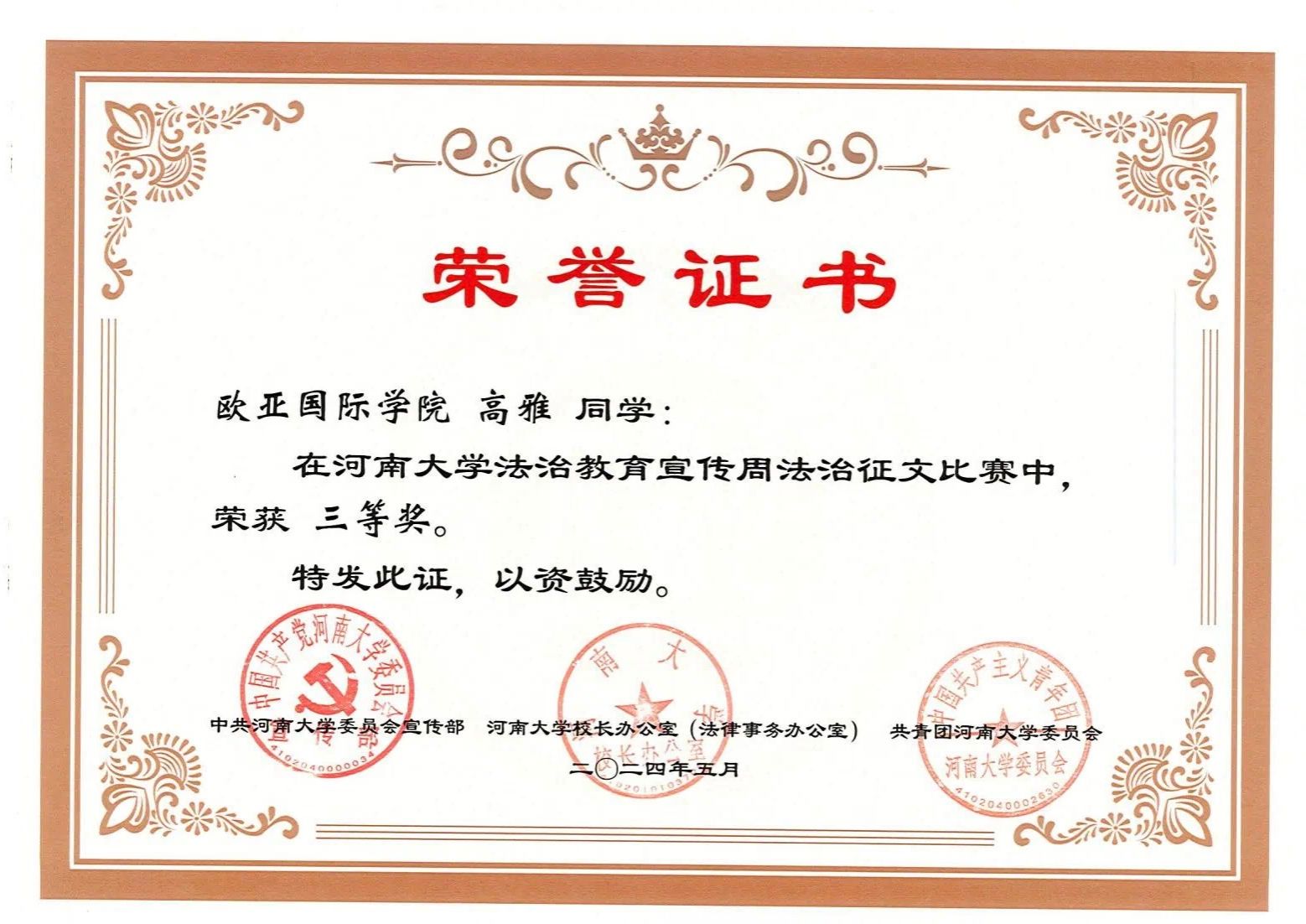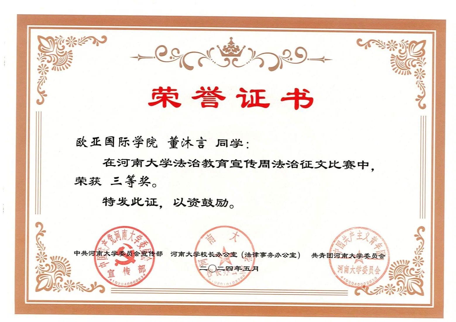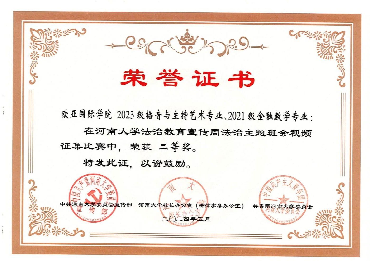 本次活动中小说狂人 荣获优秀组织单位。小说狂人 董沐言、高雅获得征文类三等奖。小说狂人 2023级播音与主持艺术专业、2021级金融数学专业获得视频类二等奖。