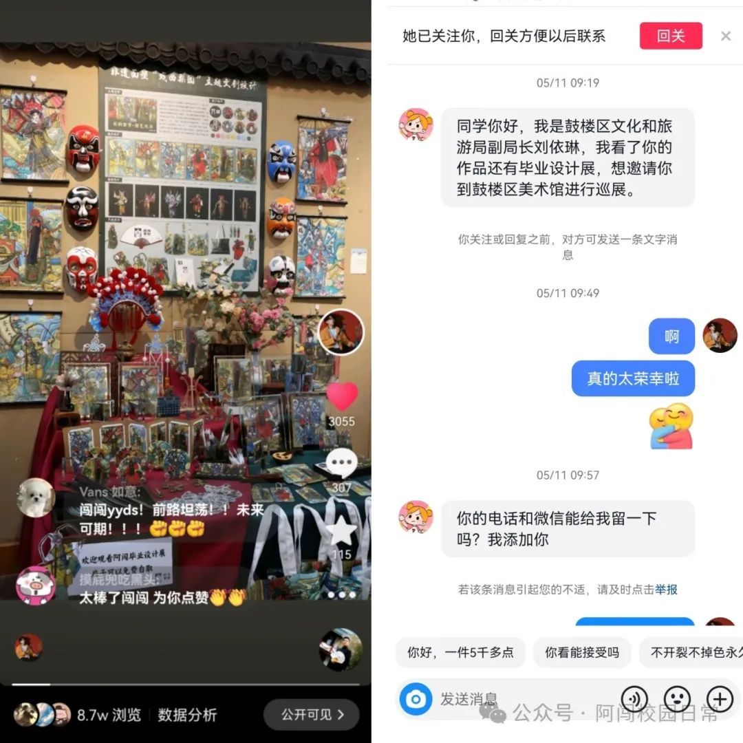 故事最开始还要从我的毕业设计展览说起,当时真的很认真的准备了半年时间,从插画到面塑创作,全身心都投入了进去。因为我当时想着既然选择做了这件事,就要去认真做好它,也算是给自己的本科阶段画上一个圆满的句号吧,毕业展开展后,当时就受到了大家的一致认可,真的超级开心,哈哈哈。同时我也分享到了自己的自媒体平台上,被鼓楼区文旅局认真负责任的刘依琳副局长给发掘了出来,真的非常荣幸的收到了办展的邀请。