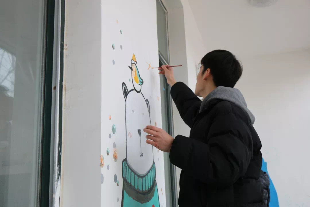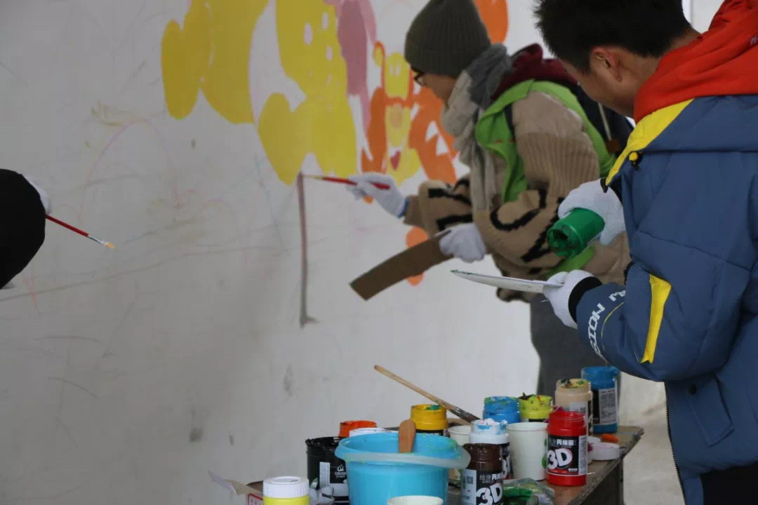下午,驻村第一书记牛林豪老师前往学校看望参加墙绘的志愿者们,并为同学们送来了保暖用的手套等物资。同学们的墙绘作品也赢得了来访老师们的一致好评。