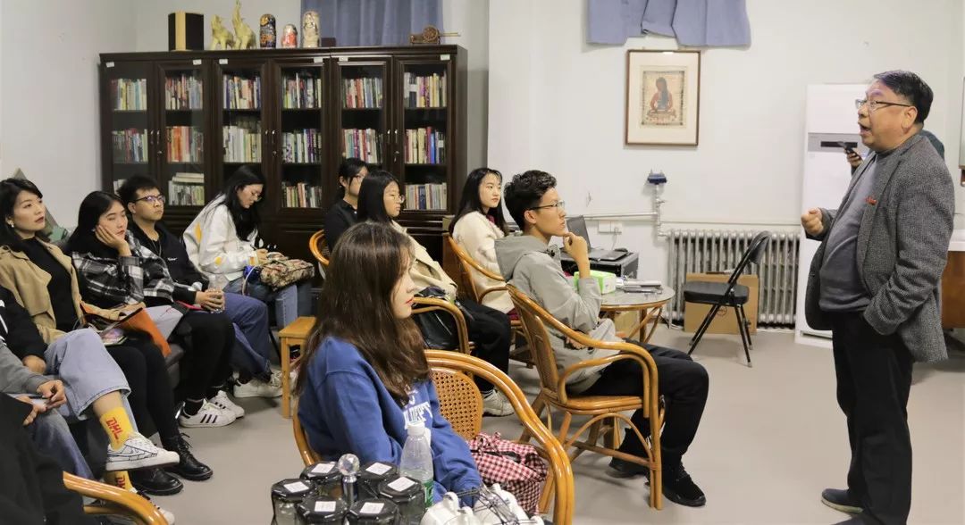 影视沙龙活动在学院四楼影视欣赏工作室举行。学院党委书记李卫国与学生代表探讨电影、交流感受。