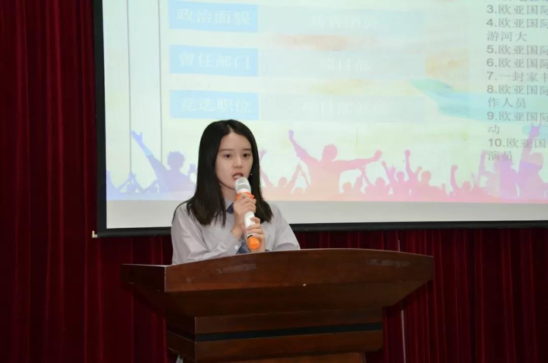 随后,各部门竞选者从个人介绍、工作经历、竞选优势、工作设想等方面进行阐述,充分表现出了对欧亚青协的热爱。