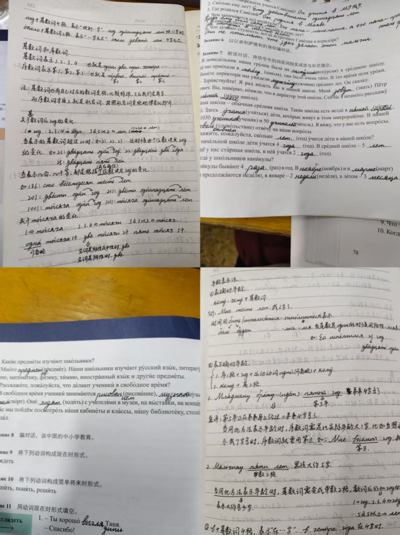 俄语不同于英语,中文等,最显著的特点就是复杂的变格和动词的变位。俄语共有六个格,单复数之间的格的变化也不一样,当然,还存在很多特殊变格的词语。而动词也根据名词的阳中阴性以及单复数的不同有着不一样的变化。因此,为掌握好格的变化和动词变位等,只能靠多做题,不断地练习和改正。