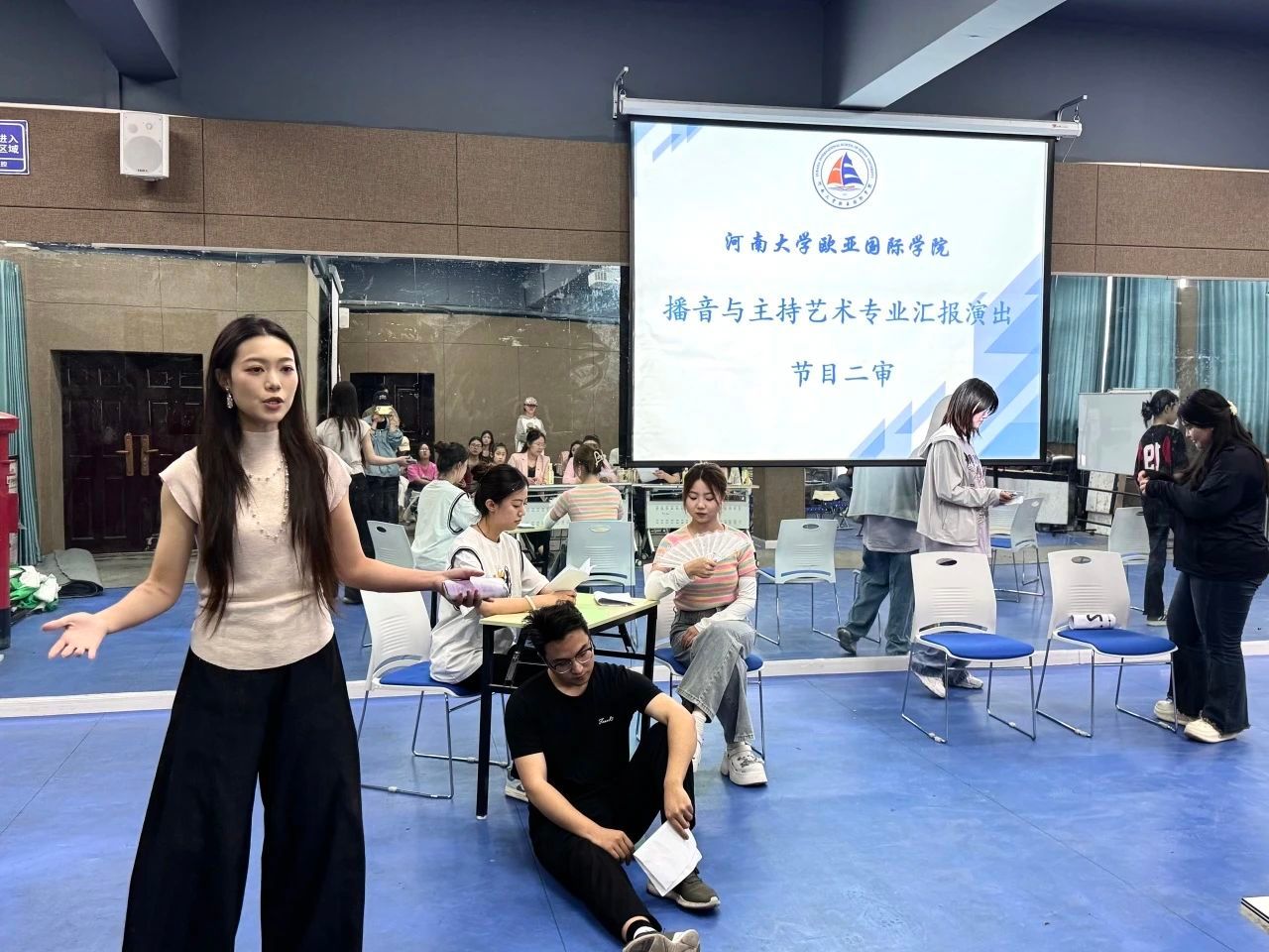 为全力筹备“放飞”汇报演出,确保演出以最佳状态精彩呈现,学院于4月26日在一楼活动室进行节目二审。院党委副书记贺颖、指导老师金冰冰、郭泽瀚、辅导员陈萌、赵婧舒参与此次节目二审。