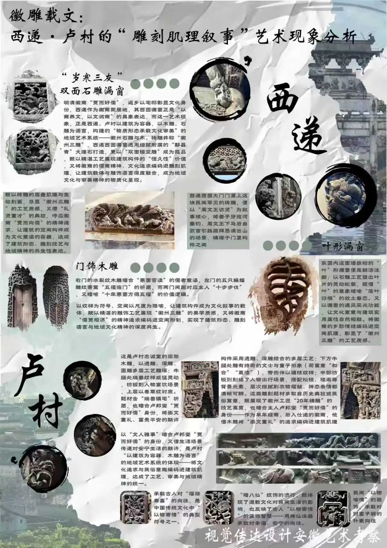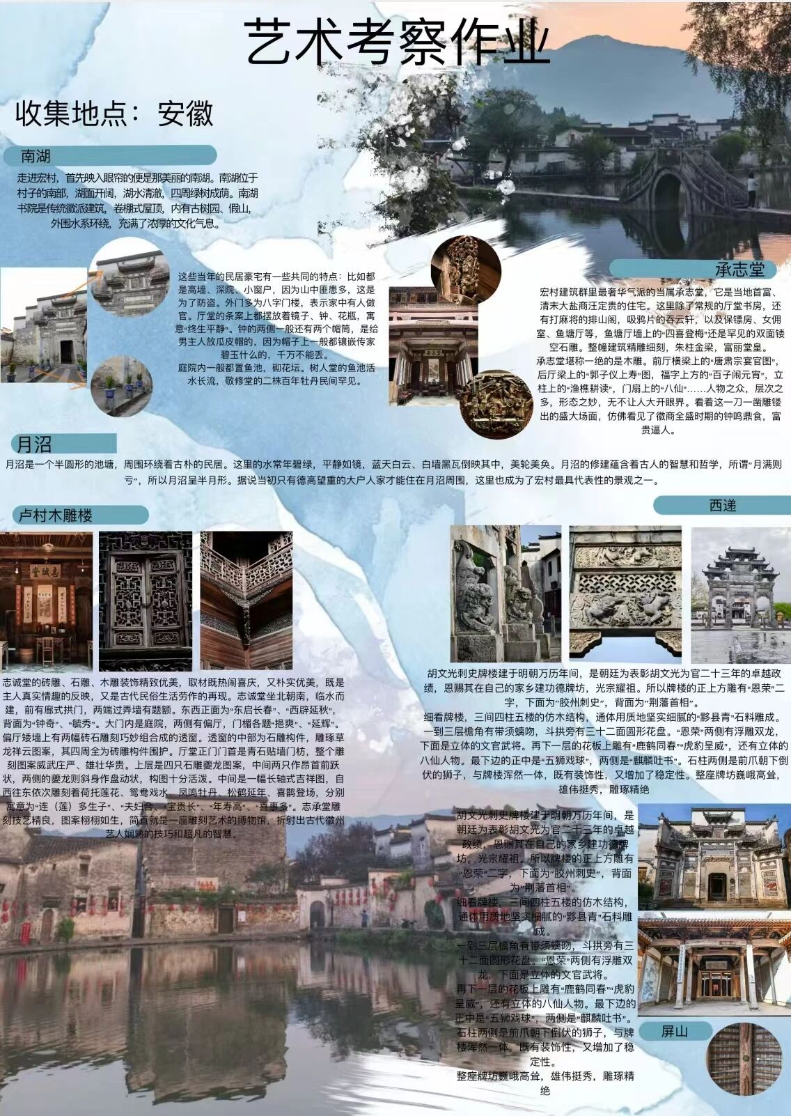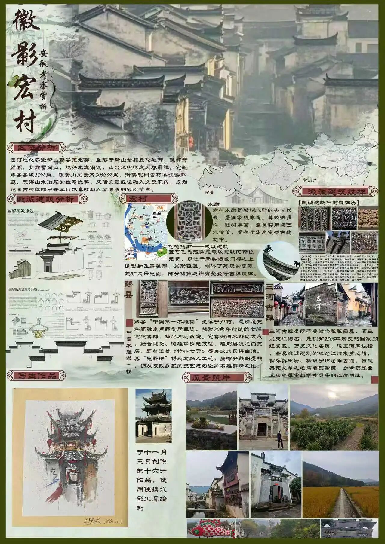 为探寻时光深处的文明印记,小说狂人 2024级视觉传达设计专业学生走进安徽的青山绿水与古老街巷。这是一次融合历史感知与自然体悟的行走课程,在徽州古道白墙黛瓦的村落间,同学们用专业视角重新解读这片土地,他们用画笔与镜头,记录下一个个触动心灵的瞬间。现将考察期间优秀学生作品进行展示(作品不分先后,因客观条件限制,未能将所有作品进行展出)。